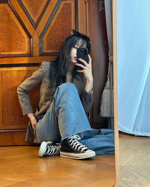 김도연, 문가영, 채정안 등 여러 셀러브리티들의 데일리룩에서 찾아볼 수 있는 '잇템'! 바로 볼드한 쉐입에 생 로랑 로고가 '미친 존재감'을 발휘하는 블랙 선글라스다. 오버사이즈로 완벽한 자외선 차단은 물론 얼굴이 작아보이는 효과까지 누릴 수 있다.
