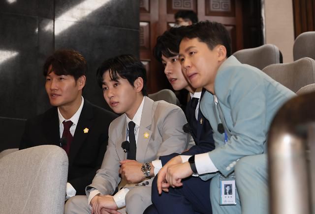 대정부질문 참관하는 방송인 김종국·딘딘·이이경·양세형. [사진=연합뉴스]