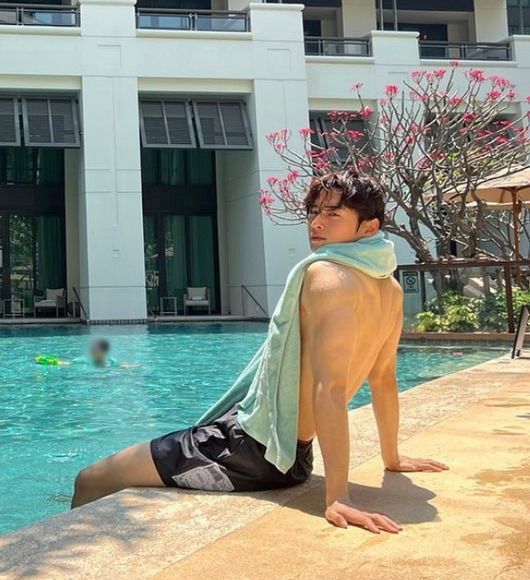 공개한 사진에는 어깨에 수건을 걸린 채 카메라를 응시하는 차은우 모습이 담겨있다. 또 다른 사진에는 수영장에서 홀로 수영하고 있다. 마치 화보의 한 장면 같다.