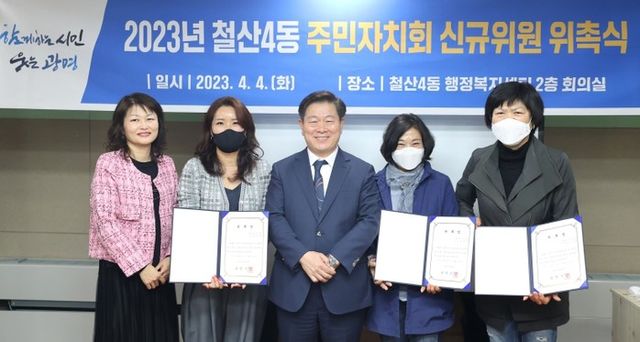 철산4동 주민자치회는 이날 위촉된 신규위원 3명과 기존 위원 27명 등 총 30명으로 구성됐으며, 앞으로 임기 동안 지역 주민들을 대표해 지역사회에 필요한 봉사활동과 축제, 마을사업 등을 펼쳐갈 예정이다.