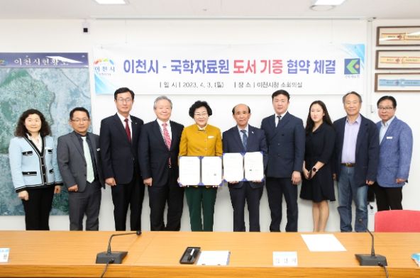 시장은 협약식에서 “도서 기증을 통해 독서진흥, 이천시 문화 알리기 등 다양한 목적에서 함께 하게 되어 기쁘고, 이천시는 앞으로도 독서문화 저변확대를 위해 최선을 다할 것”이라며, “국학자료원의 도서 기증에 깊이 감사드린다”고 말했다.
