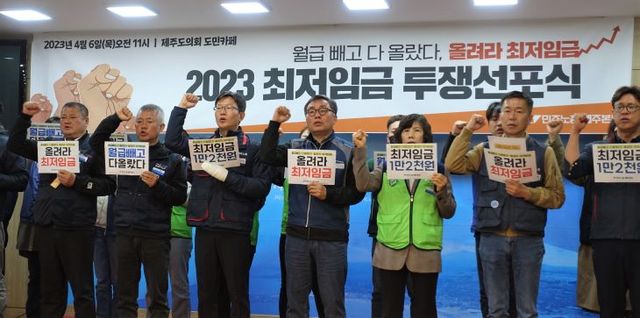 그러면서 "2024년 적용 최저임금은 최소 월금 250만원, 시급 1만2000원 이상으로 인상돼야 한다"며 "민주노총 제주본부는 광범위한 시민 사회와 연대해 최저임금 투쟁을 전개하겠다"고 밝혔다.