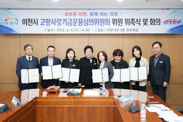 [파이낸셜경제=김영란 기자] 이천시는 5일 시청 중회의실에서 제1회 이천시 고향사랑기금운용심의위원회를 개최하여, 2023년 이천시고향사항기금운용계획안을 심의하고, 위원 위촉식을 가졌다고 밝혔다.
