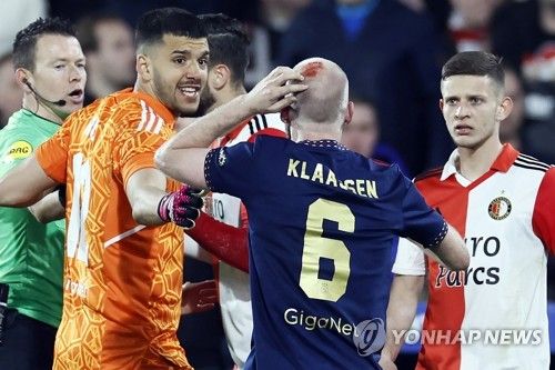 지난 6일(한국시간) 네덜란드 로테르담에 위치한 페에노르트 스타디움에서 열린 페예노르트와 아약스의 KNVB컵 4강전에서 아약스 미드필더 데이비 클라센이 경기 중 관중석에서 날아온 물건에 머리를 맞아 피를 흘린 사건이 발생했다.