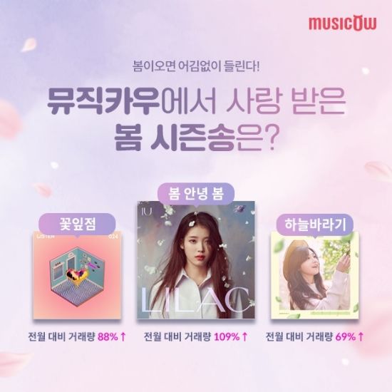 뮤직카우 관계자는 "계절이 변할 때마다 찾고 듣게 되는 노래들이 뮤직카우를 통해 또 다른 방식으로 소비되고 있다"며 "지난해에 이어 올해도 봄 시즌 관련 곡들의 거래량이 증가하고 있다"고 전했다.