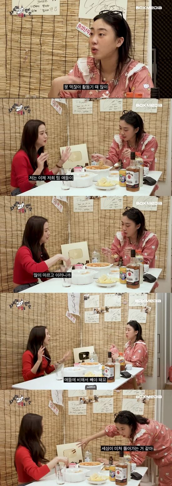 그러면서 이영지는 "근데 그러면 더 힘들겠다. 활동기 때는 많이 못 먹잖아"라며 지수를 걱정했다. 지수는 고개를 끄덕이며 "저는 이제 저희 팀 멤버들이 많이 마르고 이러니까 제가 상대적으로 (쪄 보인다)"고 털어놨다.