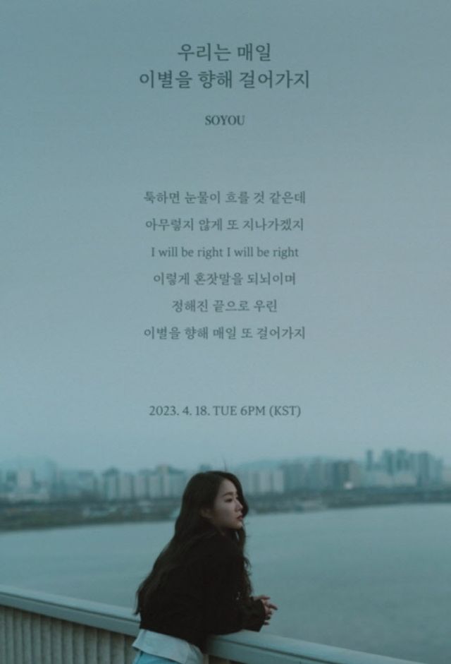 소유는 지난 7일 소속사 빅플래닛메이드엔터 공식 SNS를 통해 새 디지털 싱글 ‘우리는 매일 이별을 향해 걸어가지’의 리릭 티저를 공개했다.