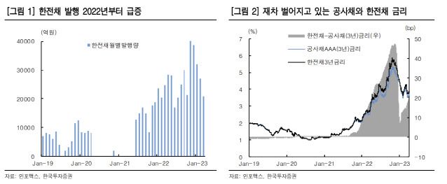 다만 그는 “대규모 발행이 지속되면 약세가 이어질 수 있고, 수요 구축으로 크레딧 시장 약세와 기업 자금조달을 위축시킬 수 있다”며 “전기요금 인상을 마냥 미룰 수 있는 상황도 아니기에 적절한 요금인상이 필요한 시점으로 판단한다”고 강조했다.