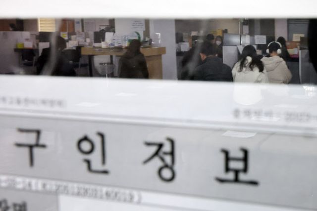 15일 서울 마포구 서부고용복지플러스센터의 일자리 정보 게시판에 실업급여 신청을 하는 시민들의 모습이 비치고 있다. (사진=연합뉴스)