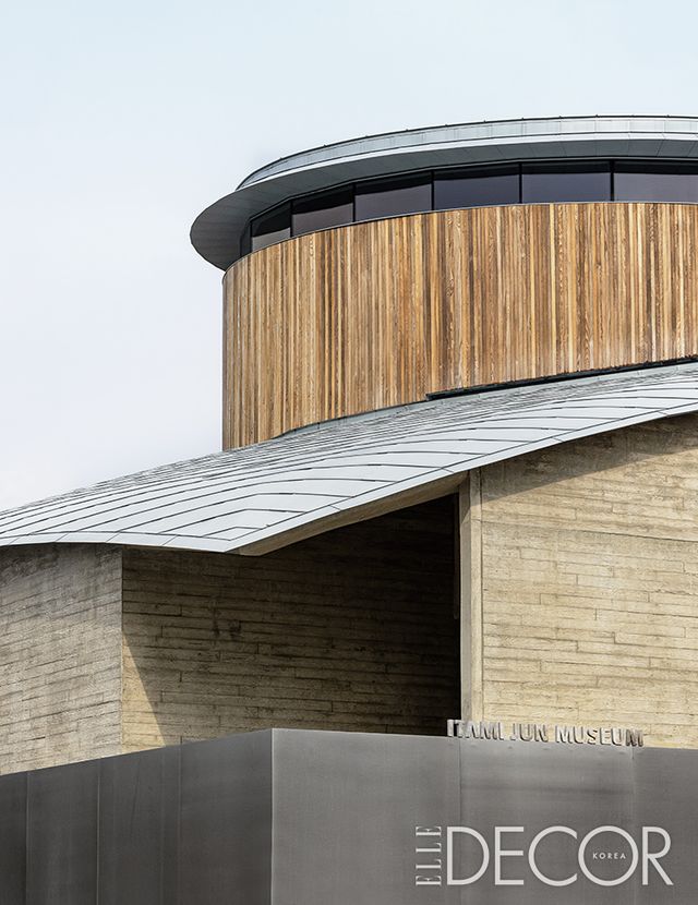 자연과 조화를 이루고 조응하는 방식 그리고 지역 풍토와 역사를 고민했다. 유동룡미술관은 이타미 준의 첫 작품인 ‘어머니의 집’(1971)과 첫 작업실 ‘먹의 집’(1975) 그리고 제주의 자연 속에 안긴 ‘포도호텔’(2001)까지 세 작품을 오마주했다. 묵직한 출입문을 열고 들어서면 ‘먹의 집’ 내관이 연상되는 검은색 공간이 펼쳐지는 가운데, 왼편으로 외부 환경을 향해 볼록하게 돌출된 창가 자리가 눈에 띈다.