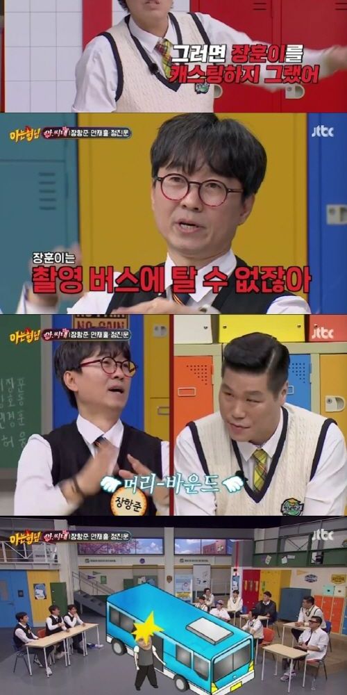 김영철이 "서장훈을 캐스팅하지 그랬냐"라고 하자 "(서장훈이 키가 커) 촬영 버스에 탈 수가 없지 않냐"라며 핑계를 댔다.