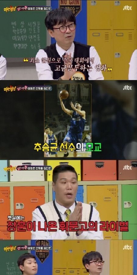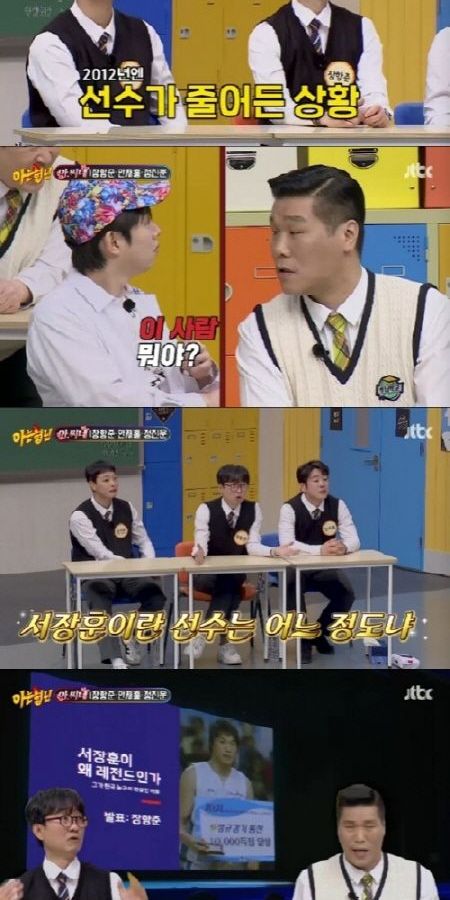 서장훈은 "추승균 선수가 부산중앙고등학교 출신이다. 내가 고3 때 우리와 전국대회 결승전에서 붙었는데 업다운이 있다. 잘할 때는 선수가 많고 실력이 안 될 때는 선수가 점점 줄어든다. 그때가 배경"이라고 말했다.