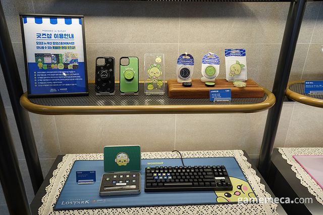 아울러 팝업스토어가 운영되는 곳이 카페인만큼 모코코 테마 음료와 마카롱을 판매하고 있으며, 현장에 방문하는 유저들에게 엽서, 부채, 스티커, 달력 등 모코코 굿즈를 증정하고 있다. 여기에 스마트폰 케이스, 마우스패드, 키캡(키보드 각 키에 씌울 수 있는 부품), 열쇠고리 등 모코코를 소재로 제작한 로스트아크 굿즈를 구매할 수 있는 굿즈샵도 현장에서 운영 중이다.