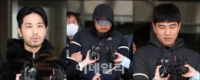 서울 수서경찰서는 이날 오후 2시께 강도살인 혐의를 받는 이경우, 황대한, 연지호 등 3명을 서울중앙지검에 송치했다. 범행에 가담했다가 중도 이탈한 것으로 파악된 20대 남성 이모씨도 강도예비 혐의로 송치했다.