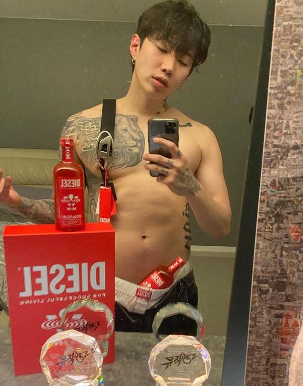 박재범은 8일 자신의 인스타그램을 통해 자신이 대표로 있는 소주 브랜드와 디젤의 협업과 팝업 스토어 오픈을 알렸다. 그러면서 직접 소주병을 팬티에 꽂은 채 찍은 사진을 공개했다.