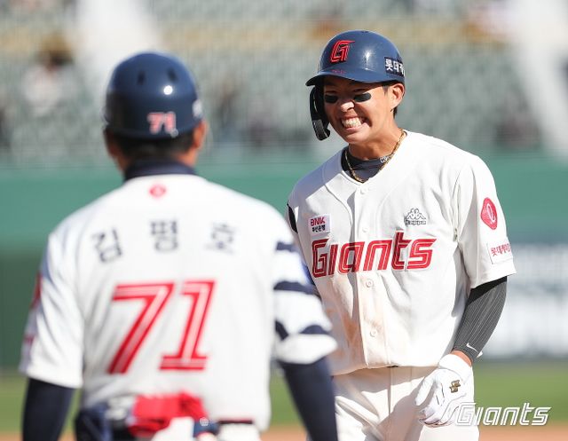 김민석은 롯데가 1-0으로 앞선 7회말 무사 1·2루 찬스에서 KT 우완 박세진을 상대로 깨끗한 우전 안타를 때려내며 2루 주자를 홈으로 불러들였다. 데뷔 첫 안타와 타점을 결정적인 순간 기록하는 강심장 기질을 보여줬다.