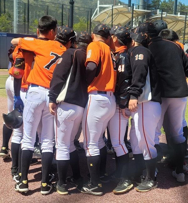 9일 부산 기장 현대차 드림볼파크에서 열린 2023 고교야구 주말리그 전반기(부산·제주권) 1차전에서 부산정보고에게 재역전승을 한 제주고 선수들이 파이팅을 외치고 있다.