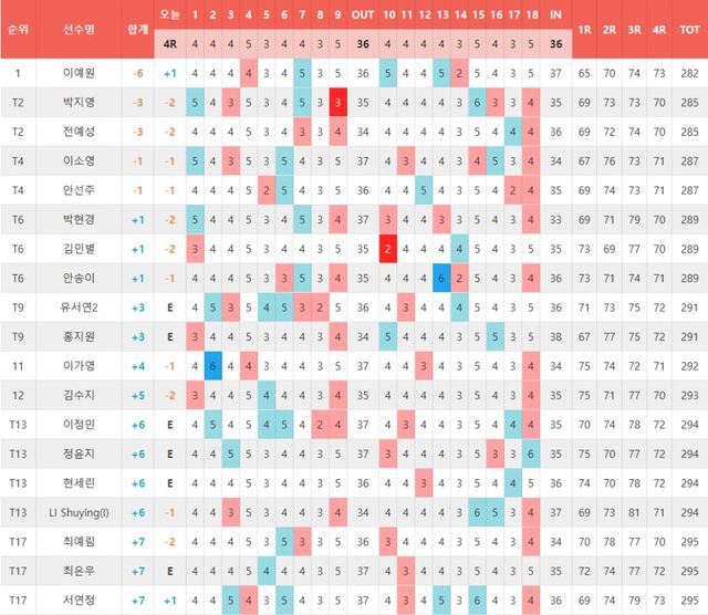 1.이예원 -6(우승), T2.박지영-전예성 -3, T4.이소영-안선주 -1, T6.박현경-김민별-안송이 +1, T9.유서연2-홍지원 +3, 11.이가영 +4, 12.김수지 +5, T13.이정민-정윤지-현세린-리슈잉 +6, T17.최예림-최은우-서연정 +7, T20.조아연 +8, T24.임진희-성유진 +9, T26.박민지-권서연-김시원-장은수-나희원 +10, T32.임희정 +11, T36.황유민-박주영-린 마리아 그랜트-고지우 +12, T41.김지현 +13,