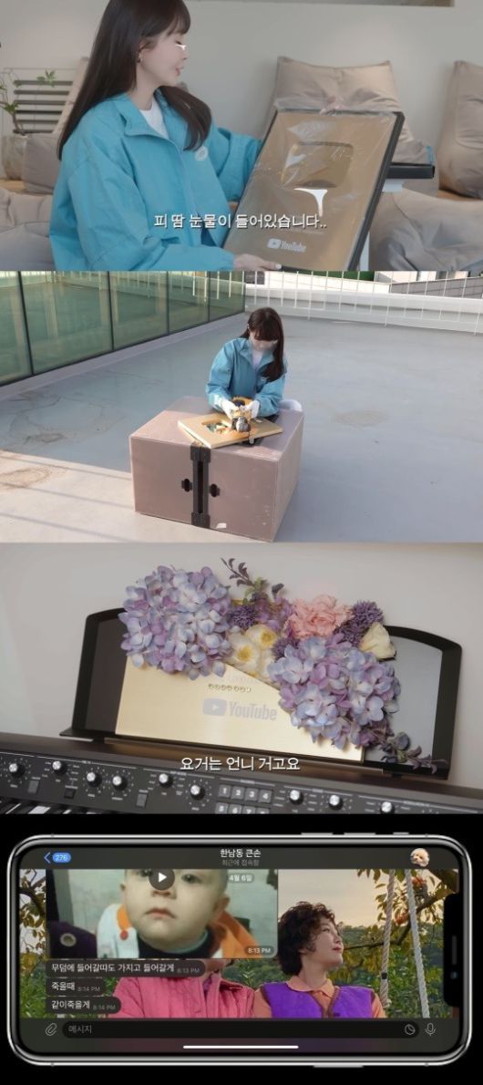 드디어 골드버튼 개봉에 나섰고 실물이 드러나자 강민경은 “작년 한 해 저의 피땀 눈물이 담겨있다”며 감회에 젖었다.
