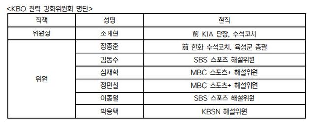 [이데일리 스타in 이석무 기자] KBO가 기존 기술위원회를 재편한 전력강화위원회를 구성한다.