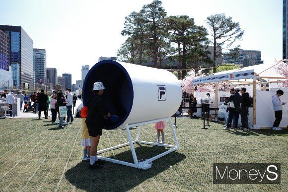 새하얀 테니스 코트에서 경기를 펼치는 광경에 멈춰서 구경하는 행인들도 많았다. MZ세대(1981~1995년 출생한 밀레니얼(M) 세대와 1996~2010년 출생한 Z세대를 통칭)에게 인기가 뜨거운 브랜드인 '노티드' 부스도 나란히 배치돼 문전성시를 이뤘고 지금이라도 행사에 참여할 수 있는지 묻기도 했다.