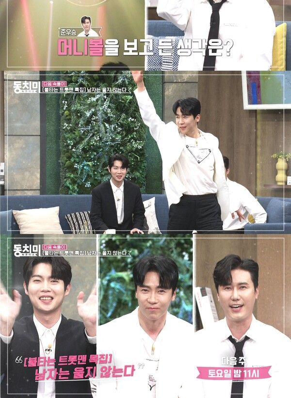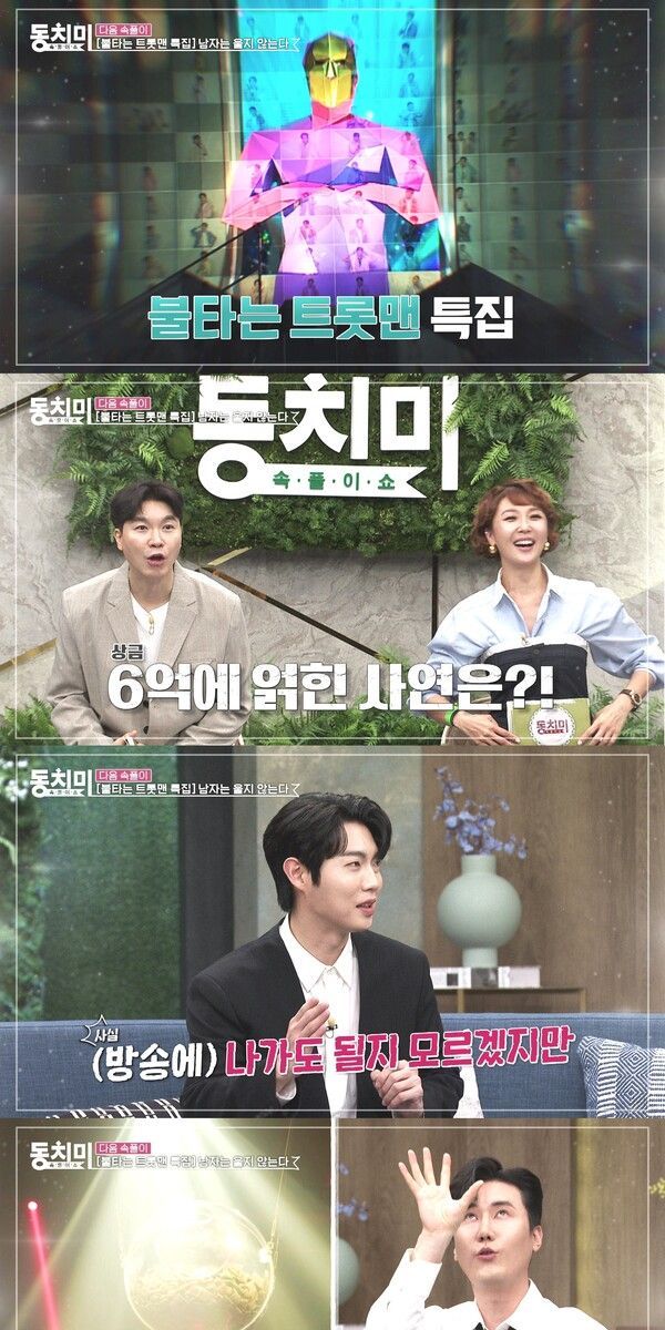 지난 8일 방송된 MBN ‘속 시원한 속풀이 힐링 토크쇼, 동치미’에서 방송 말미 이들 세 사람의 출연을 알리는 ‘불타는 트롯맨 특집’ 예고편 영상을 공개했다. 영상에서 트롯맨들은 ‘남자는 울지 않는다’를 주제로, ‘불타는 트롯맨’ 비하인드 스토리와 함께 너나 할 것 없이 트롯맨들의 숨겨왔던 흥과 끼를 마음껏 발산시키며 기대감을 증폭시킨다.