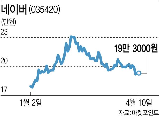 카카오(035720)와 네이버는 올 들어 각각 9.42%, 8.37% 오르는데 그쳤다. 같은 기간 코스피의 평균 상승률 12.33%보다 낮은 수준이다.
