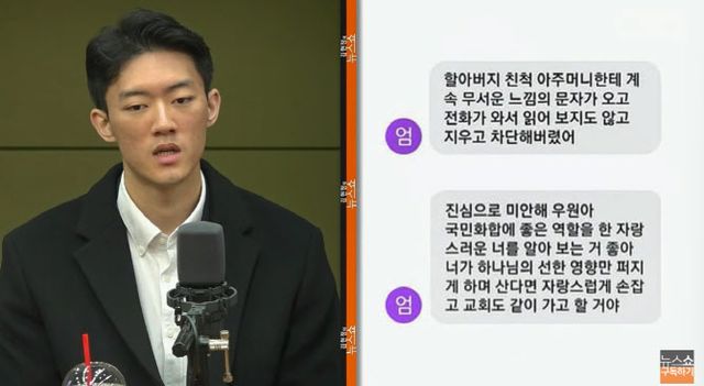 어머니가 전씨에게 보낸 문자에는 “할아버지(故 전두환) 친척 아주머니한테 계속 무서운 느낌의 문자가 오고 전화가 와서 읽어 보지도 않고 지우고 차단해버렸다”며 “진심으로 미안하다. 국민 화합에 좋은 역할을 한 자랑스러운 너를 알아보는 게 좋다”라고 쓰여있다. 어머니 역시 일종의 압력을 받는 것이 느껴지는 대목이다.