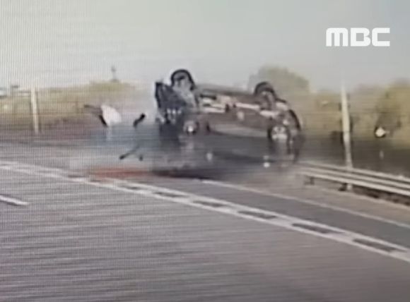 사고 당시 상황이 담긴 영상에는 편도 4차로 도로 중 1차로에서 운전하던 A씨 차량이 갑자기 양옆으로 갈팡질팡한다. 차량은 이내 왼쪽으로 급격히 방향을 틀었고 결국 가드레일과 크게 충돌한 뒤 거꾸로 뒤집혔다.