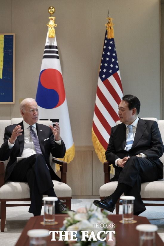대통령실은 11일 미국 정보기관의 한국 정부 도·감청 의혹에 대해 "도감청 문제가 있었다면 굉장히 중요한 문제"라면서도 "한미동맹의 중요성은 그보다 다른 차원에서 굉장히 중요한 문제다. 한미동맹의 신뢰 관계가 굳건하다는 큰 틀에서 도감청 문제도 사실관계를 파악하면서 필요한 조치를 해 나갈 것"이라고 밝혔다. 지난해 5월 21일 서울 용산 대통령실 청사에서 조 바이든 미국 대통령과 윤석열 대통령이 소인수 정상회담을 하는 모습. /뉴시스