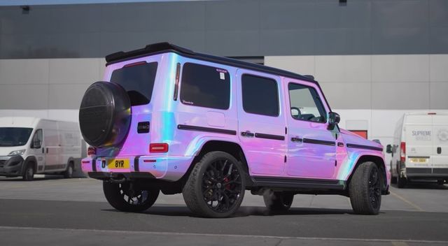 직접 커스텀 도장 작업소에 찾아가 제작한 유니콘 무지개빛의 메르세데스 AMG G63은 각도에 따라 오묘하게 색상이 달라지며 반짝이는 아름다운 빛을 가졌다.