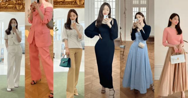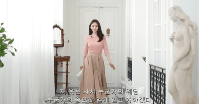 이날 강민경은 총 다섯 가지의 하객룩을 준비했습니다. 첫 번째는 분홍색 블라우스에 베이지색 플리츠 스커트를 입어 여성스럽고 우아한 매력을 발산했습니다. 그는 "하객 패션은 분홍색이 진리인 것 같다. 결혼식의 무드도 해치지 않으면서 화려함도 어느 정도 유지한 스타일이다"고 설명했습니다.