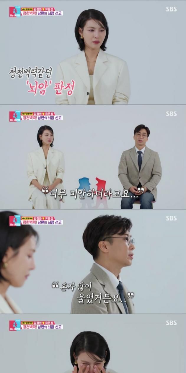한편 이날 김정화는 남편 유은성이 대학병원에서 뇌암 판정을 받은 사실을 공개했다.
