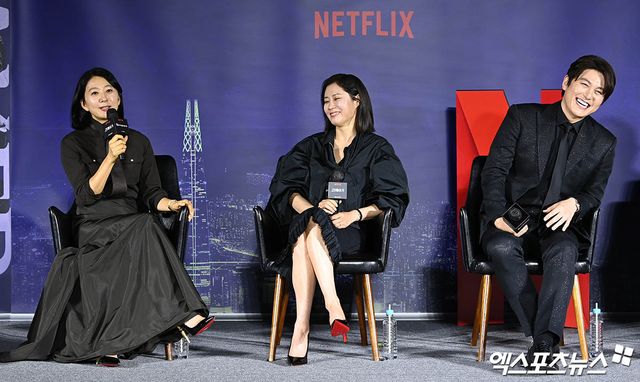 11일 오전 서울 용산구 CGV 용산아이파크몰점에서 넷플릭스 새 시리즈 '퀸메이커' 제작발표회가 열렸다. 이날 행사에는 오진석 감독을 비롯해 배우 김희애, 문소리, 서이숙, 류수영이 참석해 자리를 빛냈다.