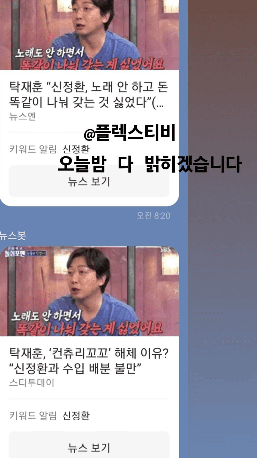이를 본 네티즌들은 "탁재훈의 노래 비중이 90% 이상이였던건 사실이지만 신정환의 추임새 및 랩이 없었으면 지금의 컨츄리꼬꼬는 없었다", "신정환이 중간중간 화음 넣는거 예술인데", "참지 마세요", "방송 꼭 챙겨보겠다 복수하시죠" 등의 반응을 보이고 있습니다.