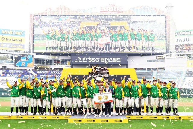 지난달 24일부터 시작된 2023 신세계 이마트배 전국고교야구대회는 11일 인천SSG랜더스필드에서 열린 결승전에서 강릉고를 꺾은 덕수고의 우승으로 마침표를 찍었다. 준결승에서 마산용마고를 누르고 올라온 덕수고는 결승전에서 짜릿한 끝내기 승리로 2년 만에 전국대회 정상에 올랐다.