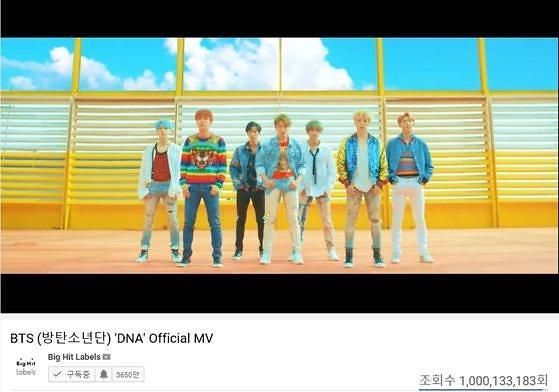 防弹少年团《DNA》MV突破十亿浏览量【图片来源 网络】