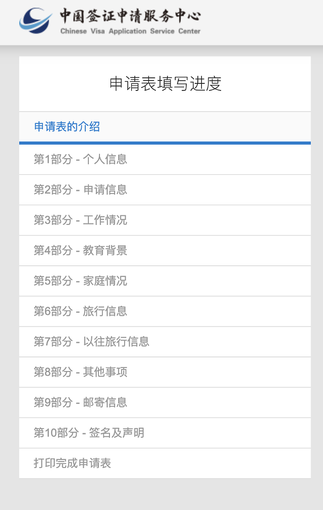 签证中心网站在线填表内容 【图片来源 中国签证申请服务中心截图】