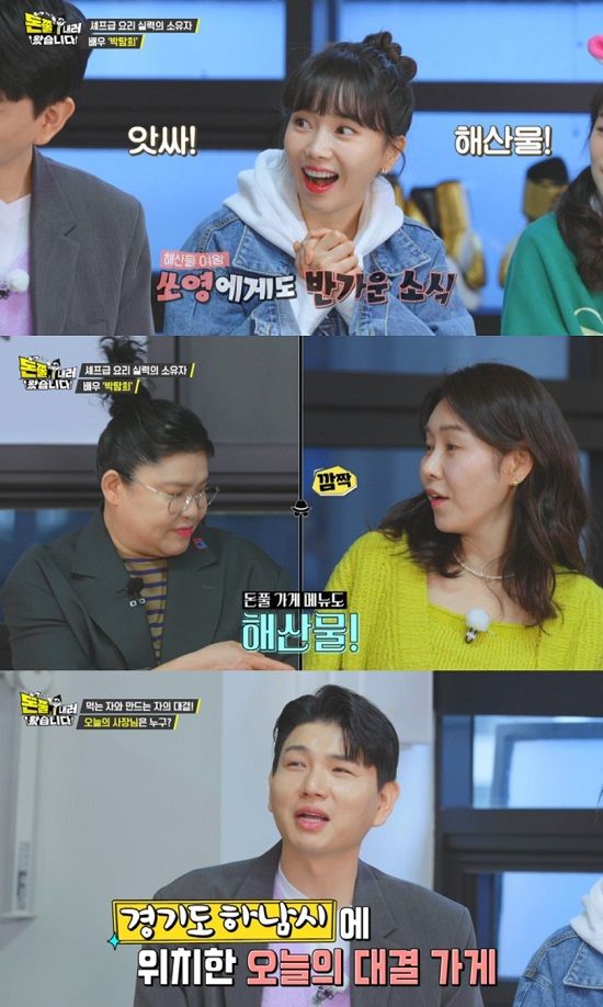 박탐희는 또 "먹는 거를 워낙 좋아하는데 해산물을 좋아한다"라고 한다. 이영자는 이에 대해 "오늘 '돈쭐 먹방' 식당이 해산물 집"이라고 환호한다.