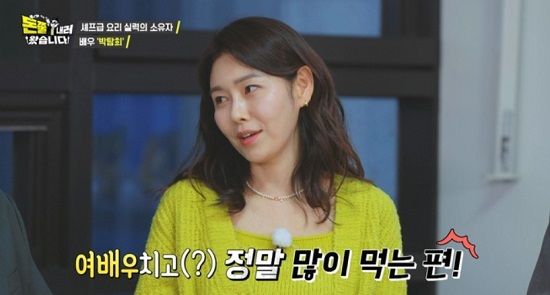 MC 이영자는 이에 "여배우들은 한 끼가 소중하지 않나"라고 묻는다. 박탐희는 오히려 "여배우치고 되게 많이 먹는다"라고 답한다.