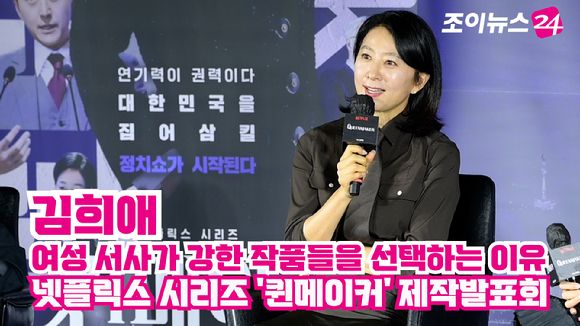 '퀸메이커'는 이미지 메이킹의 귀재이자 대기업 전략기획실을 쥐락펴락하던 황도희가 정의의 코뿔소라 불리며 잡초처럼 살아온 인권변호사 오경숙을 서울 시장으로 만들기 위해 선거판에 뛰어들며 벌어지는 이야기를 그린 작품으로 오는 14일 공개된다.