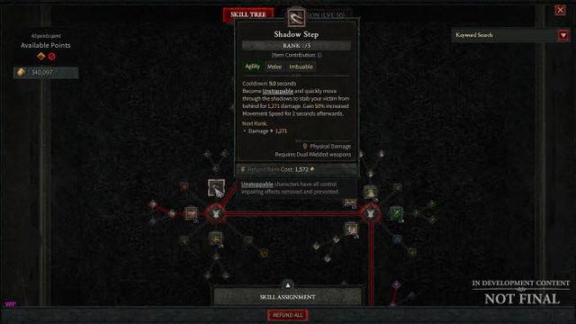 많은 피드백을 받았고, 지속적으로 살필 예정이다. 아직은 현재의 비용 수준이 합리적이라고 생각하고 있다. 라이브 서비스가 될 게임이기 때문에 스킬 초기화에 대한 관찰 끝에 조정이 가능할 수도 있다. 저레벨 단계에서는 스킬 초기화 비용을 거의 느낄 수 없을 정도로 낮은 수준으로 유지될 것이며, 종반부에서도 자원을 적재적소에 활용했다면 반환 비용이 많다고 느껴지지 않을 것이다.