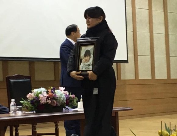 故 박주원 양 어머니 이기철 씨가 지난 2018년 박양이 다니던 졸업식에 참석했다. [사진=이기철 씨 페이스북 캡처]