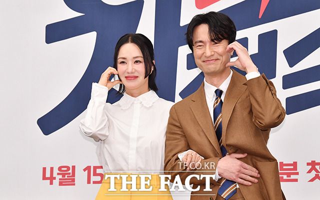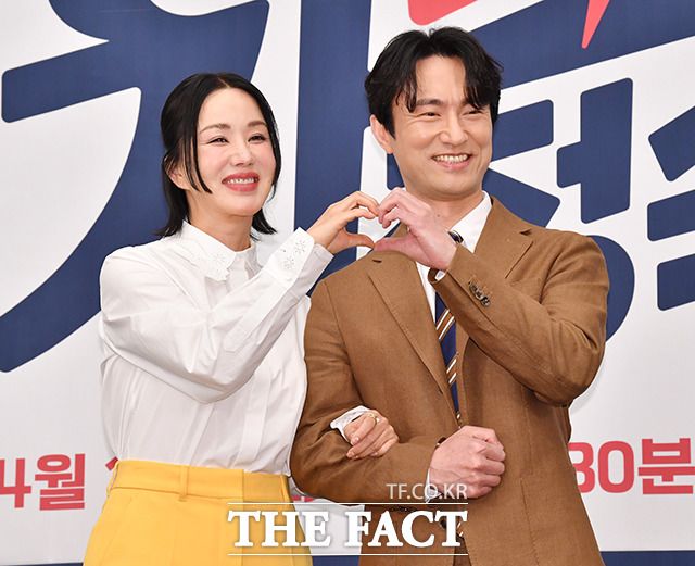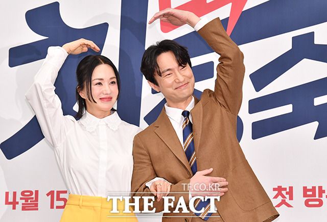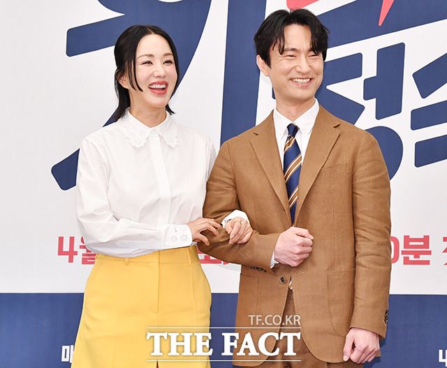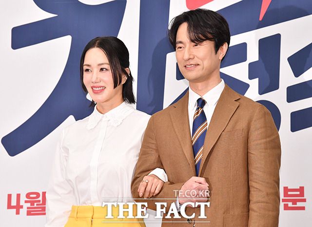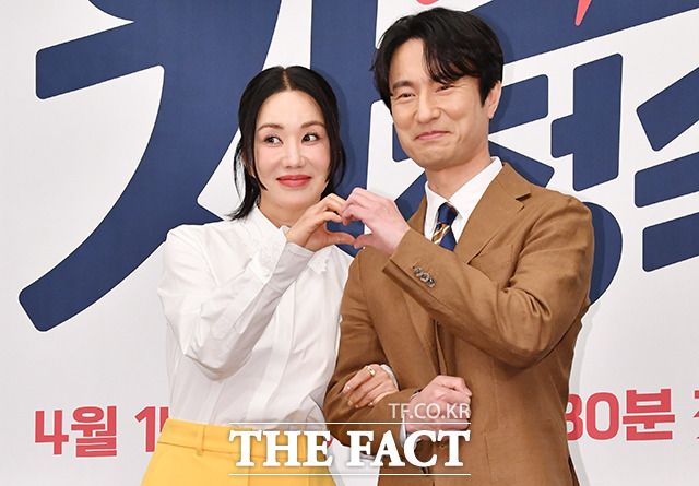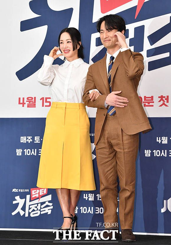 [더팩트ㅣ박헌우 기자] 가수 겸 배우 엄정화(왼쪽)와 배우 김병철이 13일 오후 서울 강남구 조선 팰리스 서울 강남에서 열린 JTBC 새 토일 드라마 '닥터 차정숙' 제작발표회에 참석해 포즈를 취하고 있다.