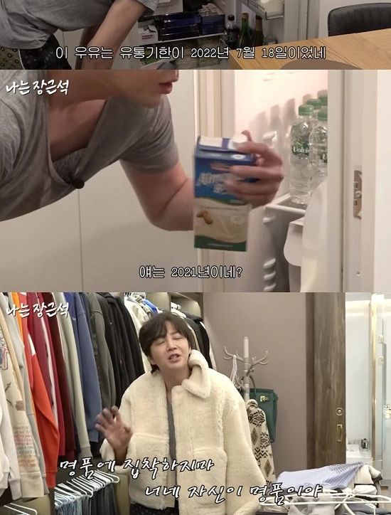 장근석은 또 다른 냉장고를 열더니 "이 우유는 2022년 7월 18일이었네. 얘는 2021년이네"라며 유통기한이 지난 우유들을 보며 놀란 모습을 보였다.