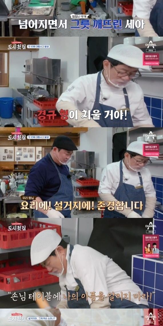 결국 이경규는 "손님 테이블에 나의 아픔을 알리지 말라"라는 말을 남긴 뒤 앓는 소리를 내며 몸져누웠다. 더불어 이경규는 "내일 못할 것 같아, 오늘까지만 하자"라고 외쳤지만, 아무도 귀담아듣지 않았다. 또, 이경규는 "이 나이에 주방에 있다니, 덕화 형만 없었어도 홀에서 빈둥빈둥할 텐데, 덕화 형 때문에 주방으로 밀려서 요리에, 설거지에"라고 한탄하는 모습으로 재미를 더했다.