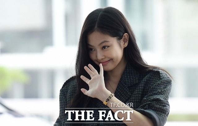 그룹 블랙핑크 제니가 2일 오전 인천국제공항을 통해 파리로 출국하며 취재진에게 손을 흔들고 있다. 샤넬 엠버서더인 제니는 프랑스 파리에서 열리는 '샤넬 2023 봄-여름 레디-투-웨어 쇼'에 참석할 예정이다./인천국제공항=임영무 기자