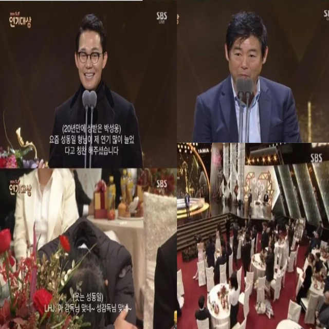 이후 박성웅이 상을 탄 뒤 성동일에게 "연기력이 많이 늘었다고 칭찬해주셔서 감사하다"라는 발언을 하자 이휘재는 소감 도중 마이크를 뺏으며 "동일 이형 감독 맞네" 라고 하며 또다시 무안을 주었다.