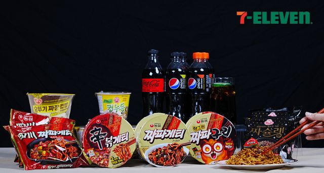 세븐일레븐은 4월 한 달간 관련 상품 구매 시 해당 상품을 추가로 증정한다. 먼저 1+1 증정 상품은 ▲오뚜기 마요짜장볶이큰컵 ▲삼양 쿠티크에센셜짜장큰컵 ▲하림 더미식유니자장면한그릇 ▲오뚜기 짜장컵밥 ▲칠성 펩시콜라제로500㎖ ▲칠성 펩시콜라제로망고500㎖ 등 6종이다.