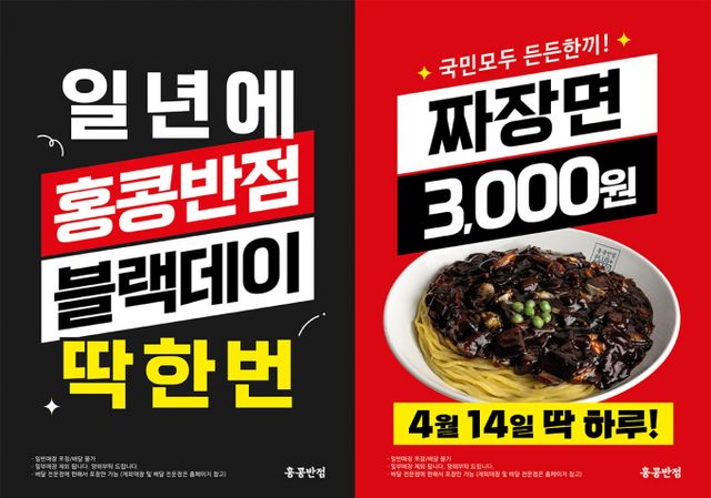 2014년부터 블랙데이 프로모션을 진행해온 홍콩반점은 올해로 10년째를 맞아 매장 방문 고객 대상 짜장면 3000원 할인 외에 배달 앱을 통한 할인 혜택을 마련했다.